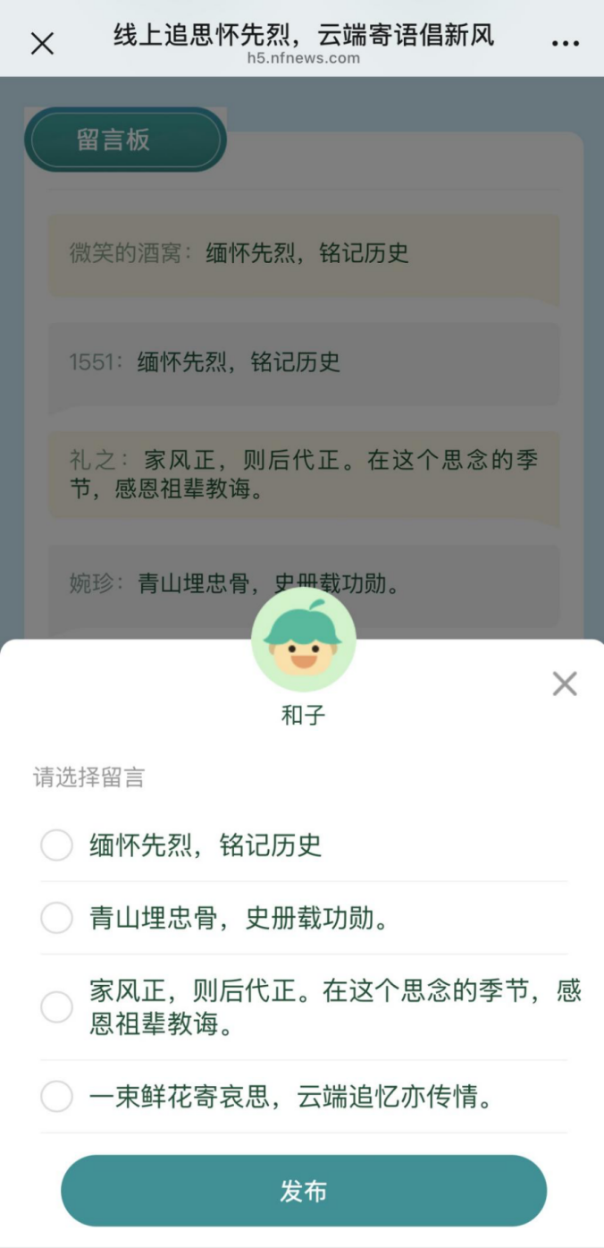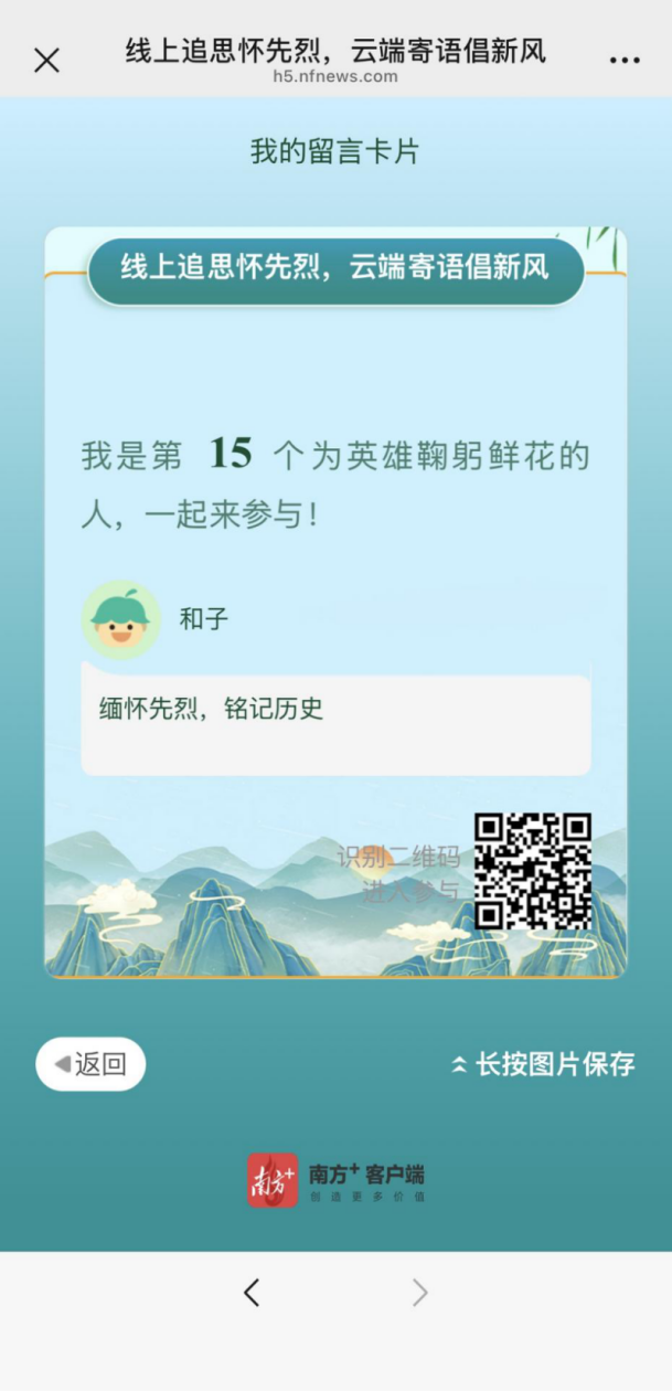 平台特设“留言板”功能,诚邀市民用文字记录感悟、抒发崇敬。您的每一条寄语,在提交后均可一键生成专属纪念海报。轻触“分享海报”,即可将这份云端思念与敬意传递至朋友圈或家人群聊,让文明祭扫的新风、让红色的精神血脉,在指尖的传递中绵延不息。